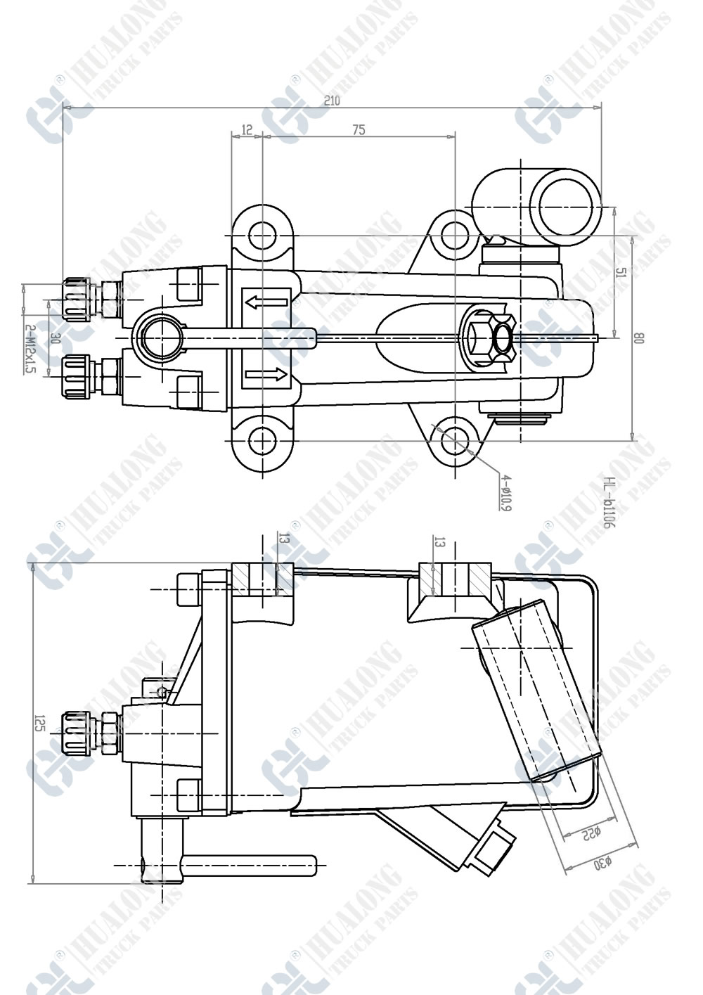 The outer thread specification (2-M12*1.5) ensures secure and stable connections between the pump and other components within the cabin tilting mechanism. This feature guarantees reliable performance and prevents any potential leaks or malfunctions. The robust construction of the HL-B1106 Cabin Pump ensures durability and longevity, even under demanding operating conditions.